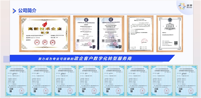 作为一家有责任、有担当的科技企业,蓝雪信息始终坚守诚信经营的原则,规范企业运作,积极履行社会责任,先后获得陕西省科技型中小企业、高新技术企业等荣誉称号,用实力彰显企业价值。公司注重企业文化建设,倡导“创新、激情、诚信、责任”的核心价值观,营造积极向上、团结协作的工作氛围,为员工提供完善的培训体系和晋升通道,让员工与企业共同成长。